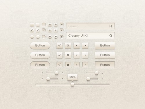 Here is the “Creamy UI Kit”. It includes radio buttons, checkboxes, a percent slider, previous/next buttons, rectangular/circular buttons, search boxes, tick/cross buttons, and the on/off GUI I did yesterday. Everything is 100% vector and can be scaled to any size if needed. It also includes a Photoshop PSD like always, Enjoy 🙂