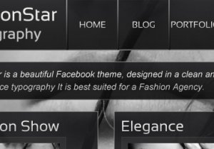 This is home page of my latest Facebook Page Template called FashionStar and is part of the “Stars” series. It is best suited for fashion agencies, photographers or anyone that likes an ellegant, dark design.