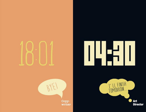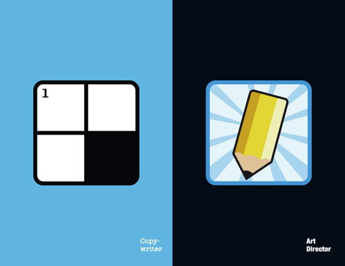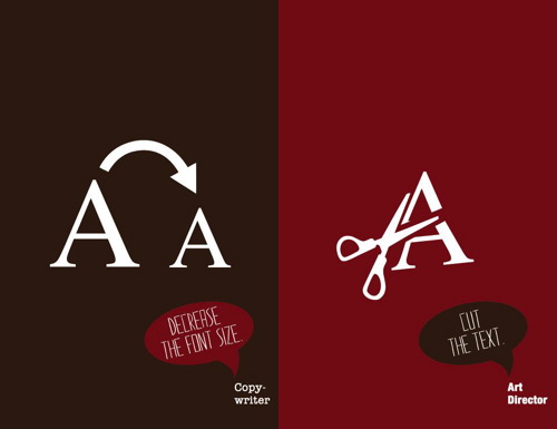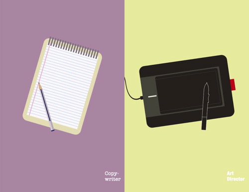 A series of minimal illustrations shows the differences between copywriters and art directors. This series showcased in a facebook fan page and labelled itself as “The eternal dispute between Copywriters and Art Directors”.