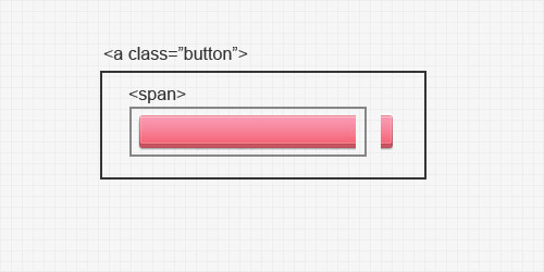 Alright, we have the image sprite ready, now is the time to implement it. As we mentioned before, this button is divided into body and tail. In the context of HTML, body is used as the background for span inside the a and tail is the background for a. Another illustration of how we combined it together.