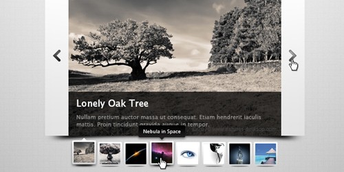 A nifty not-so-little image slider. If you’ve been with us for a while, you’ll notice a standard version of the navigational arrows have been posted on here previously. Anyways, enjoy!
