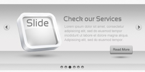 Today’s freebie is a PSD slideshow that holds the banner and text on a shelf. We used gradients to achieve the effect of the shelf on the wall that will hold your images.