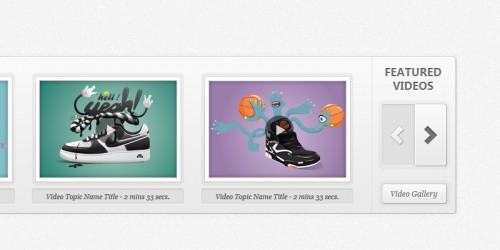 Clean video widget design featuring 3 videos with the ability to show more trough the arrows in the right part. Feel free to experiment with it, improve it, use it and so on and so forth.